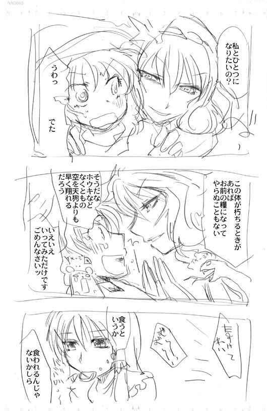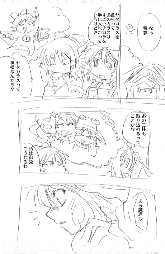 場内はすごい熱気でしたが売り子さんに全てをたくし 開幕に神狩りをしに旅にでたのですが、すごい人ごみでして しかしながら私のイーグルアイはそこそこの数の本を射止めたのでした。完。 売り子さんも買い物にいったのですが、「Bホールは肌色ばかりだー!」っていう言葉が わすれられません(笑)なんてわかりやすい状況説明。 お空と神奈子の本でもないかなぁと思ったのですがみあたりませんでしたね。 重要だろうっこのコンビはっ。・・・冬かなぁ・・。 あんたが書けよというのは寂しいのでs。 声をかけてくれたりスケブをたのんでくれた方ありがとうございました。 次回の励みにいたします(´∀`)> ペーパーにかいた神奈子にちょいと色をつけました。 影のつけかたが初期の悪魔絵師ぽいぬ。 ●サンクリ情報● B23a「ギガメーカー」 新刊 「風が吹くとき」 B5 64P 600円 風神録を神奈子がわで妄想いっぱいに描いた話。 サンプル 既刊 「風神緋想録」B5 28P 400円 「神様のいうとおり!」B5 72P 800円 あとはせっかくなのでペーパーでもつくるかもしれませぬー。 忍者ブログ [PR]