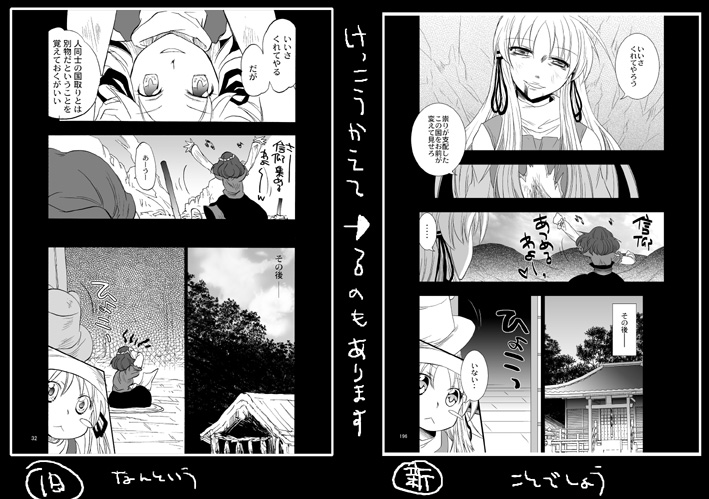 もっそい暑い中もっそい分厚い本を買いに来ていただいた皆様に感謝感謝です。 評判もよいようで3カ月がんがったかいがありました。ありがとうございます。 当日はもう嬉しくてびっくりしちゃったり色々もう素敵な事がありました。 差し入れもありがとうございました。 冬もがんばるます!今回は搬入量で作れなかったおまけも頑張って作ろうとおもってます。 そういえば冬コミは私自身はいなかったので、コミケは1年ぶりのサークル参加ということに。 やはりコミケの熱気はいいものですね・・。 んでもって19日のもりや神社例大祭に参加します。 も36ギガメーカーです。 新刊は夏に精根使い果たした結果が具現化したような本。 はい。8P100円の折り本です。28Pは無理だったよママン・・ おくうと神奈子様の話と諏訪子VS華仙ちゃんの話の2本いりです。 見ていただけたら幸い・・っ 既刊 「風のとおりみち」B6 356P 1500円 「洩矢諏訪子VS幻想郷少女」B5 52P 500円 「誠にもふもふうにゃうにゃで猫耳肉球である!いざにゃむさん」400円 おっぱいマウスパッド 2000円 以上も持っていきます。 当日はスケブ受けつけもいたします。 鉛筆描きですが、できるだけがんばりますです。 それではー PR
